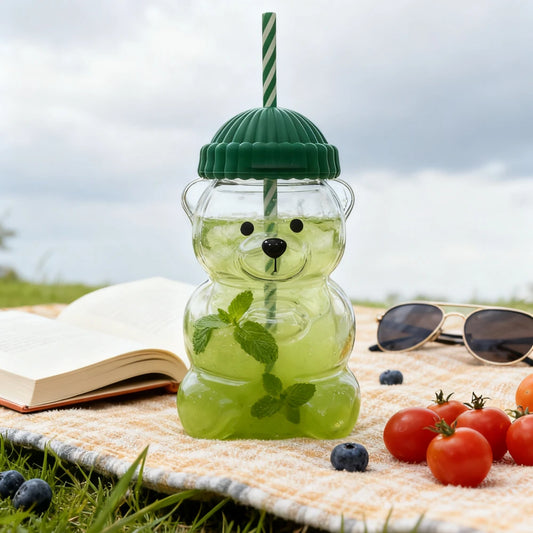 Limited Edition Glass Bear Mug - Cute Design With Straw